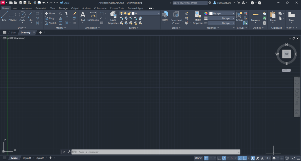 Bước 4: Autocad sẽ tự mở lại và bạn có thể thấy giao diện đã quay trở về như lúc mới cài. Không còn bị lỗi gì nữa